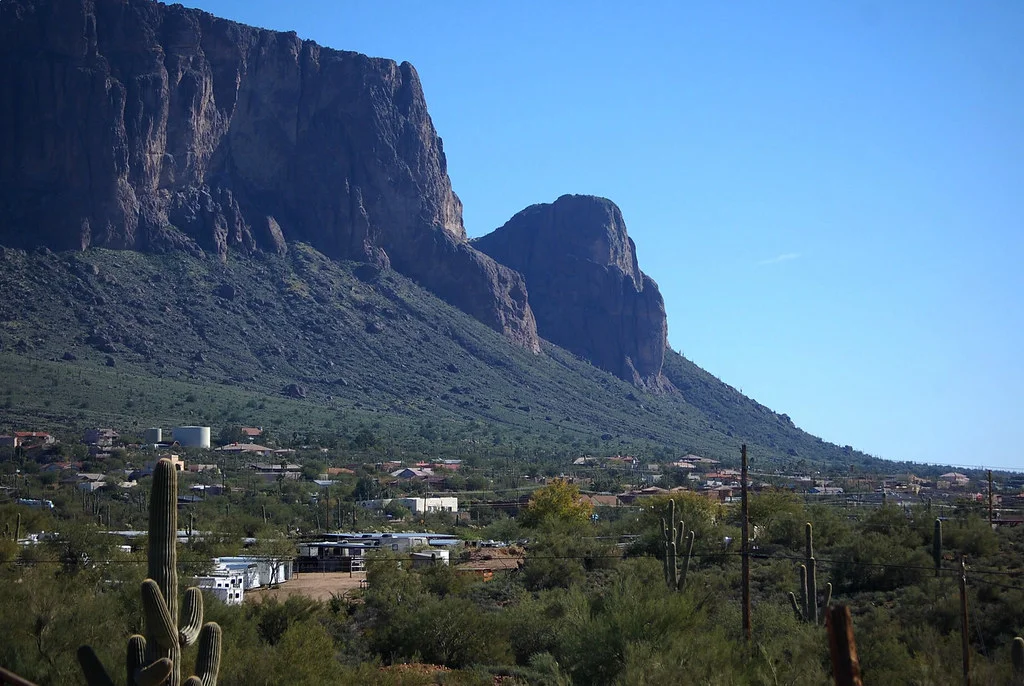 Apache Junction, Arizona is named for the junction between the Apache Trail and the Old West Highway. As of 2018, there were approximately 41 thousand residents in Apache Junction. The city is bordered by the Superstition Mountains in the east, the Goldfield Mountains in the north, and the city of Mesa in the west.